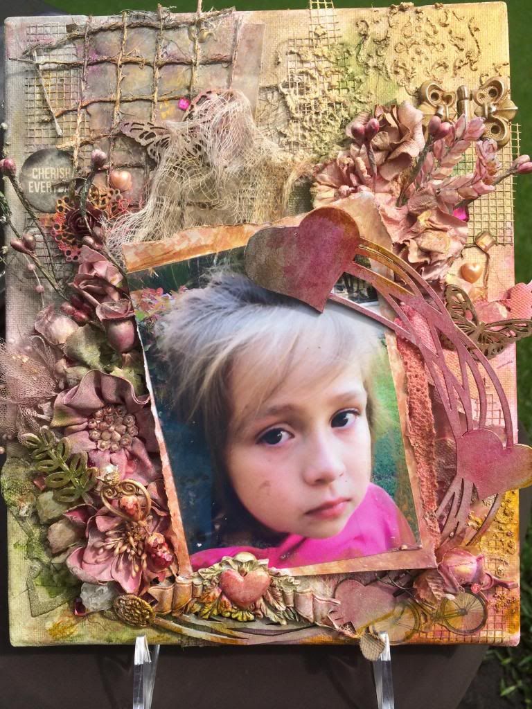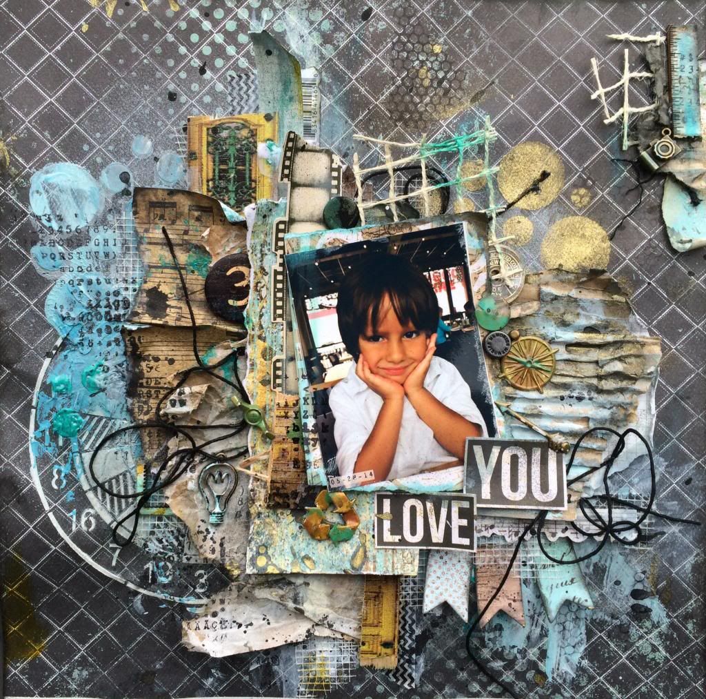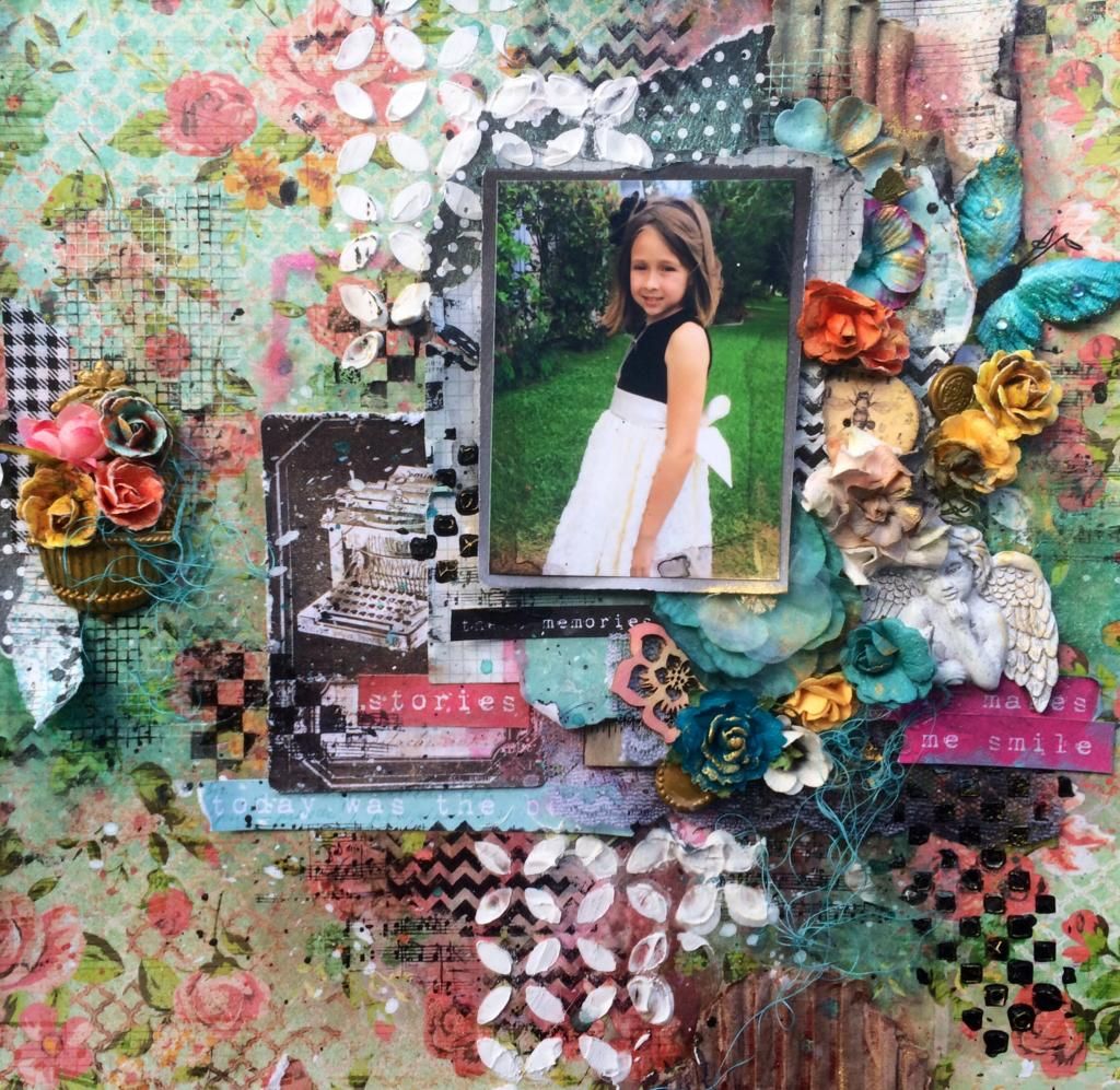 And how cute are these Prima fountains? This one came colored white so I dabbed some Ranger Patinas on it bring out all the gold tones on my page. Thanks for having a peek!! Misha